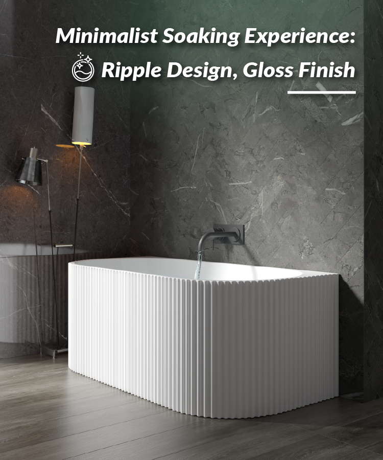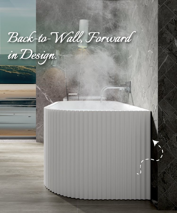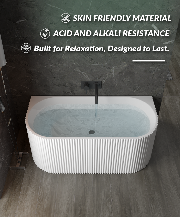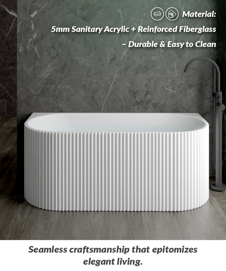 1500mm Kiama Grooved Gloss White Back to Wall FlutedBathtub