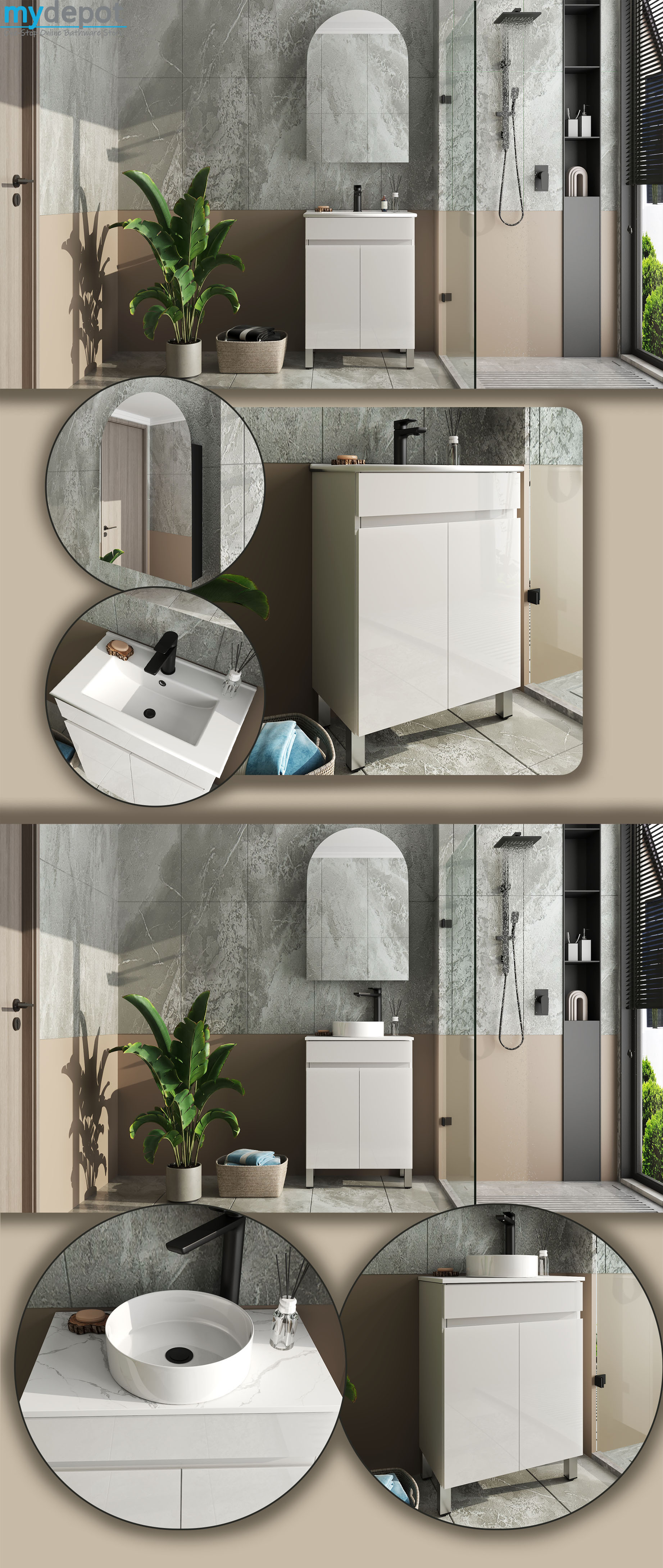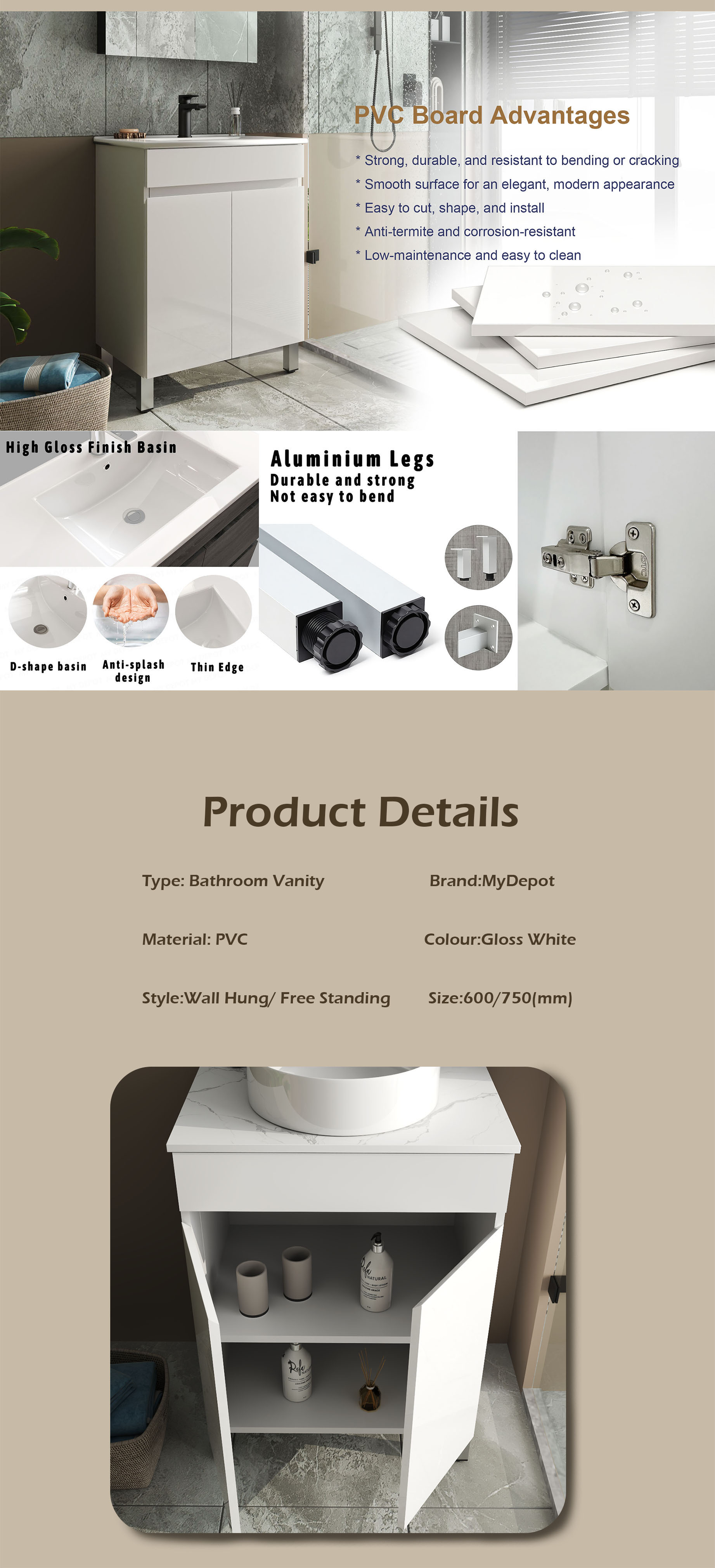 600MM Narrow Gloss White PVC Bathroom Vanity 2 Doors Free standing Cabinet Only