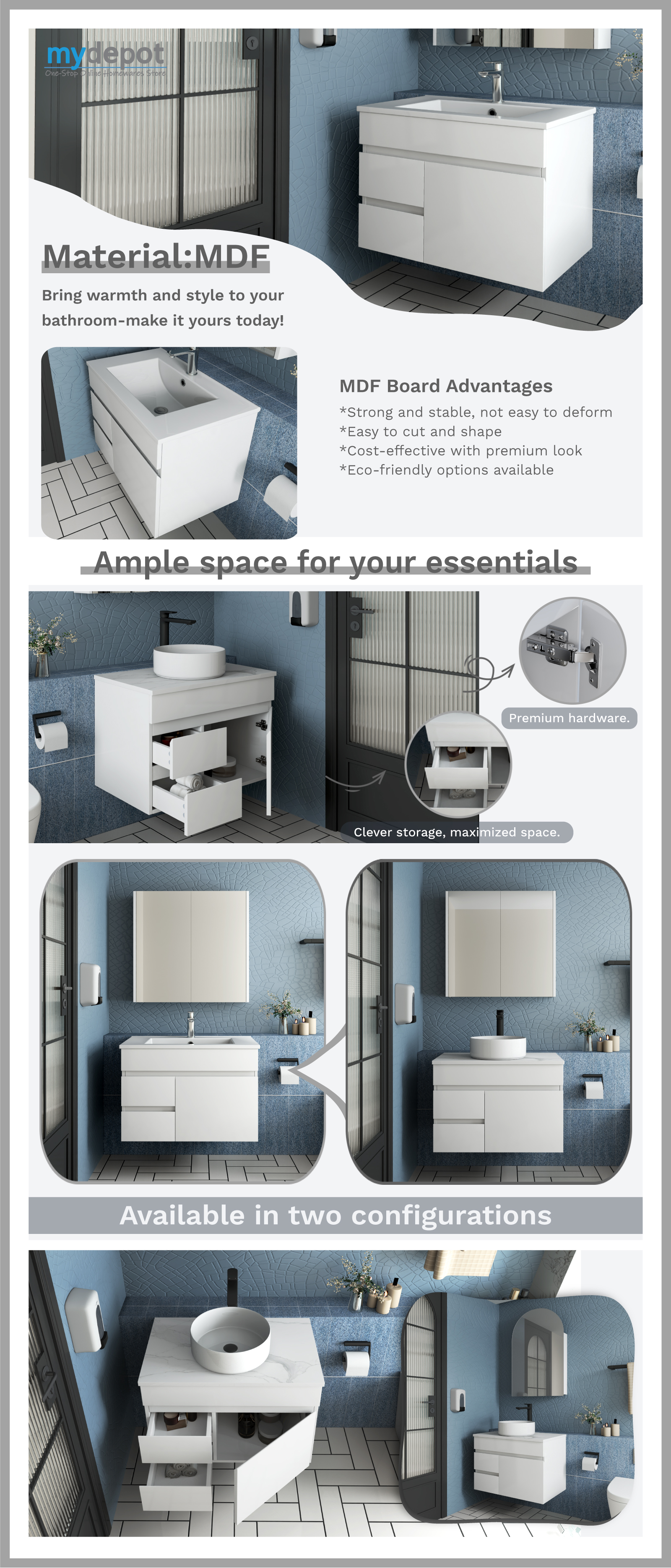 750MM Gloss White MDF Bathroom Vanity Left Drawers Wall Hung Cabinet Only