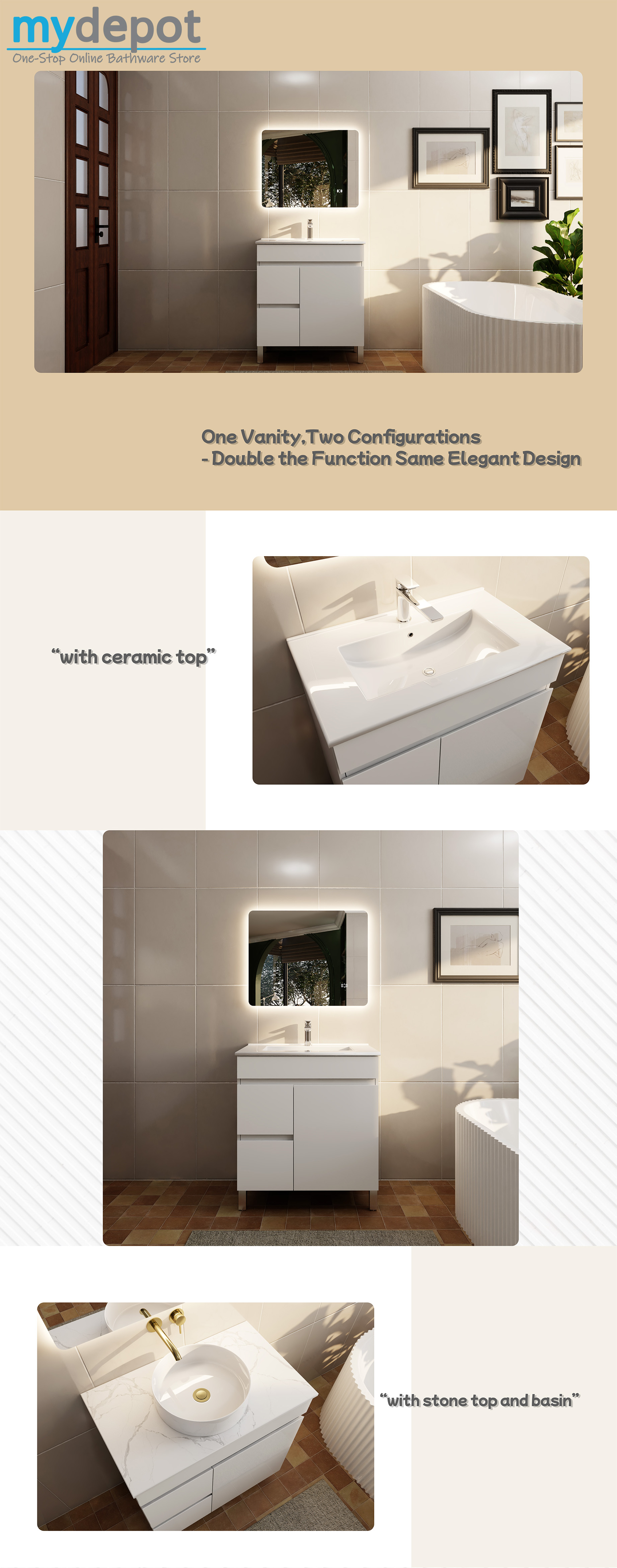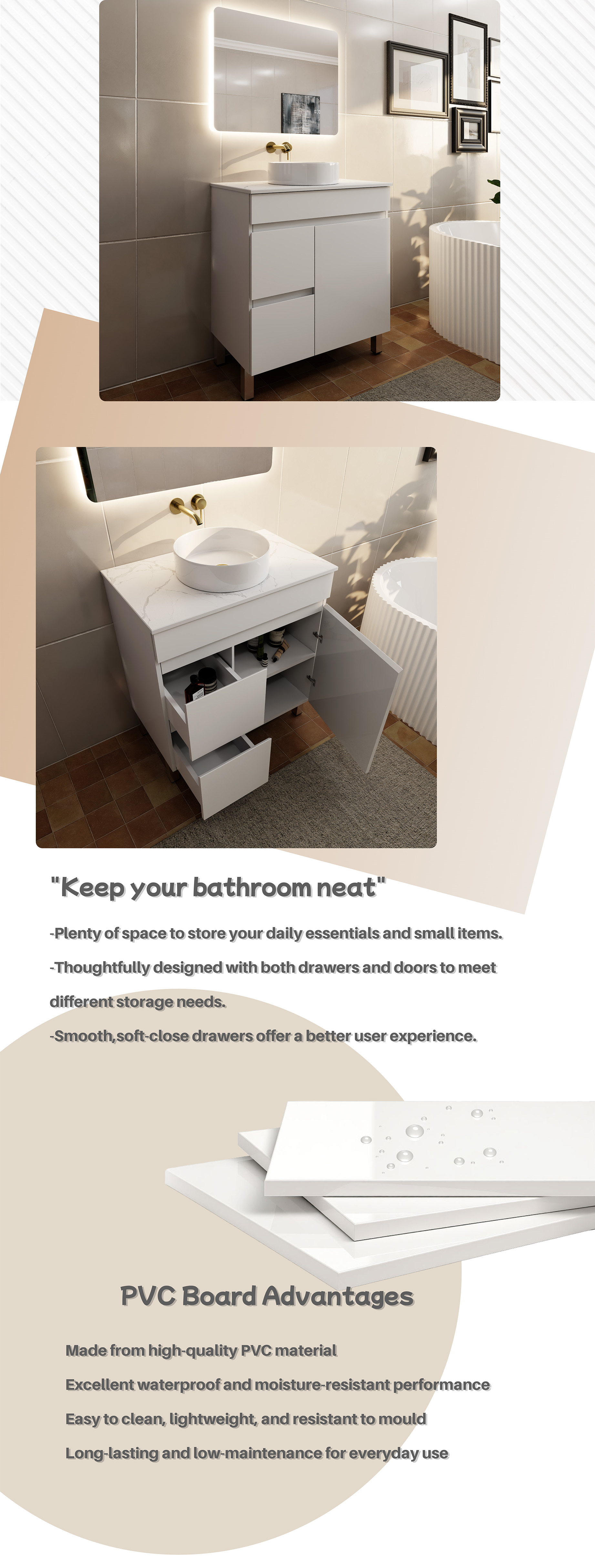 750MM Narrow Gloss White PVC Bathroom Vanity Left Drawers Free standing Cabinet Only