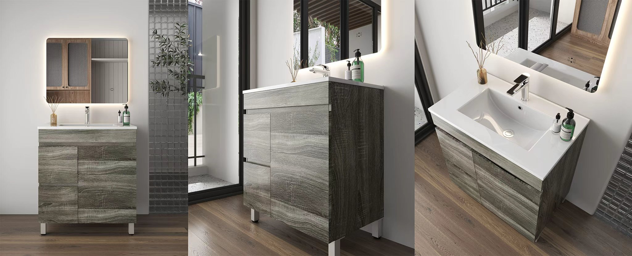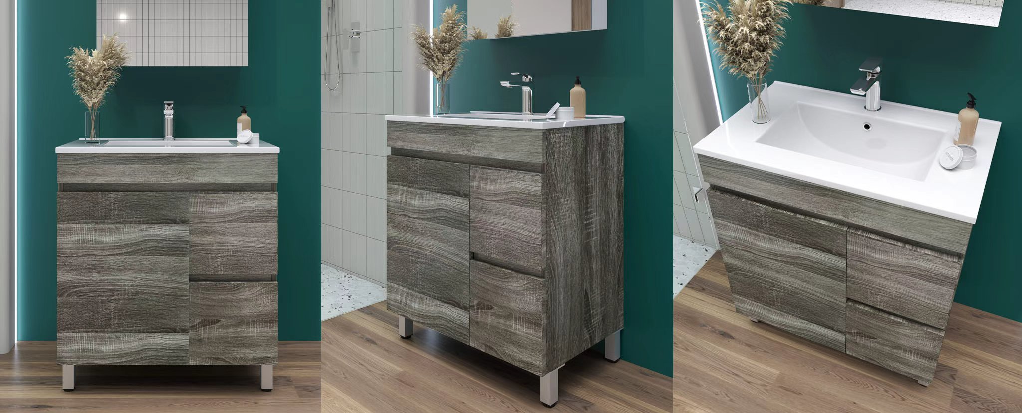 750mm Dark Grey MDF Bathroom Vanity Left Drawers Free Standing Cabinet Only